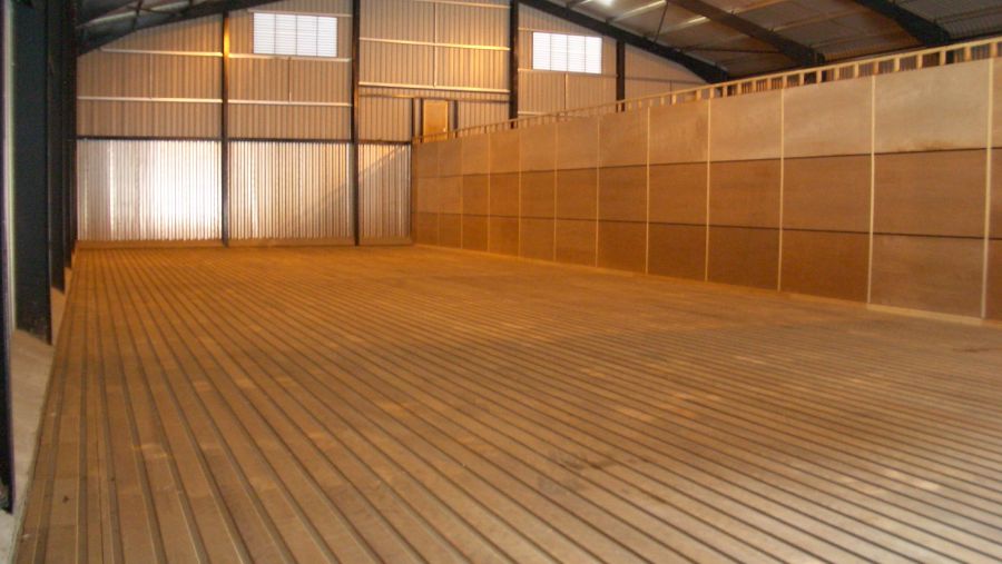 Welvent timber floor fitted on ex 3" x 8"high bearers, complete with liftout cleaning panels. approximatley 2500 ft Sq to have new galvanied mesh.